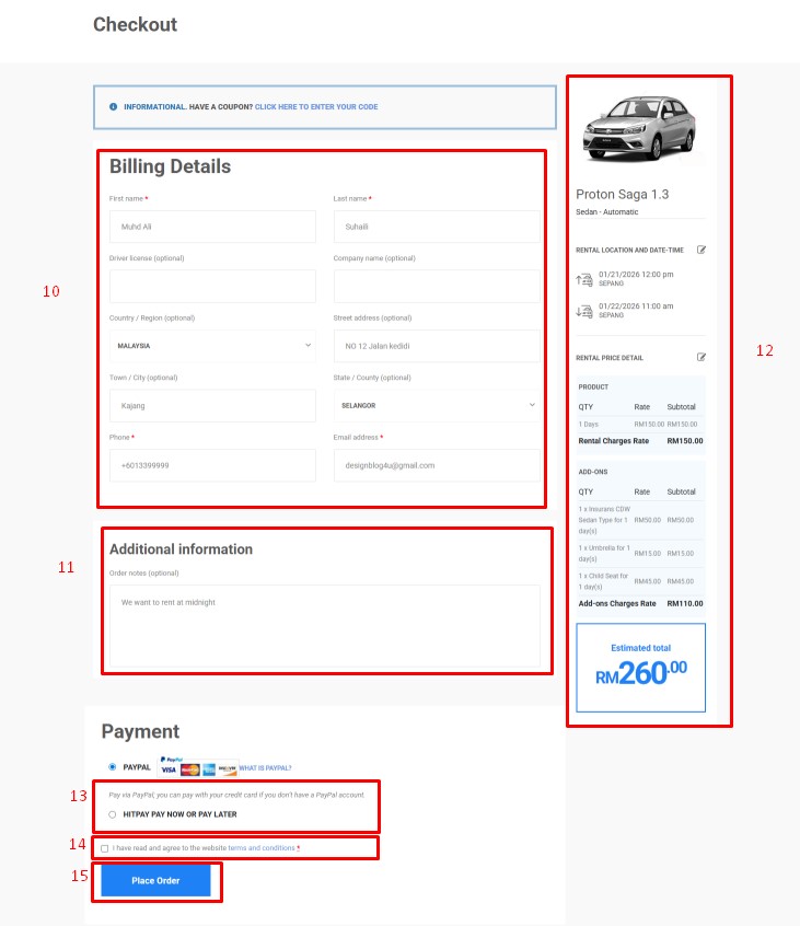 8. Add Insurans / Umrella / Child Seat (if required)